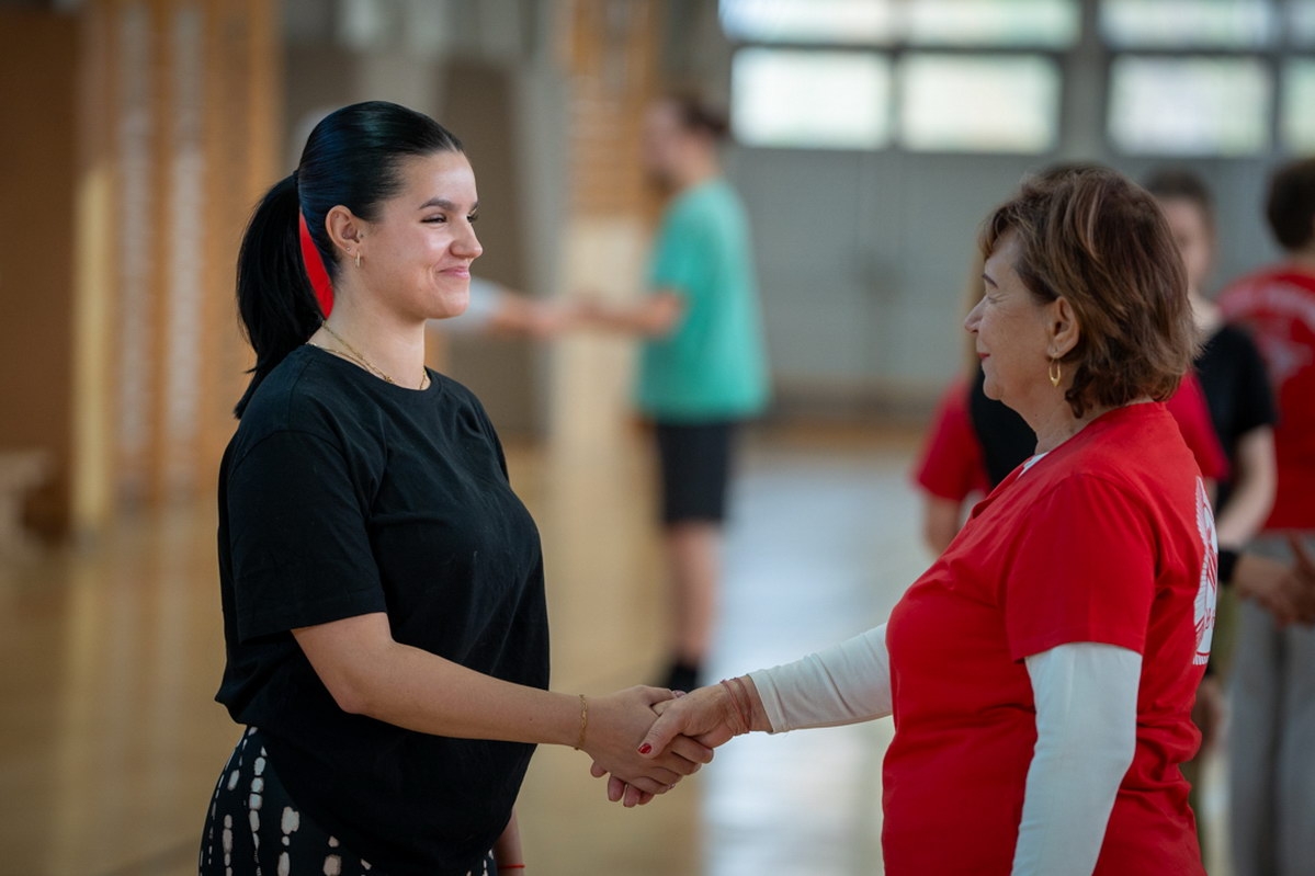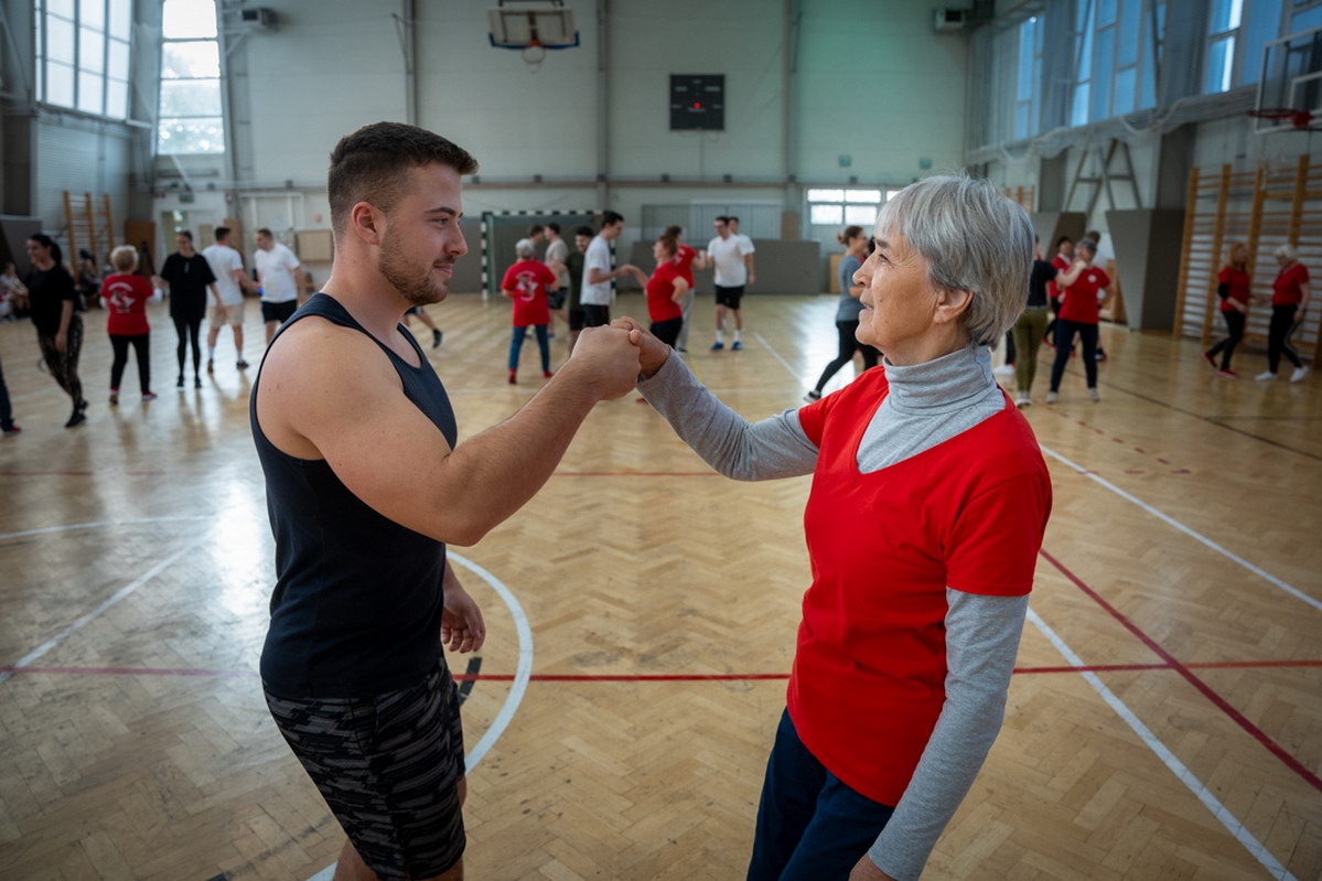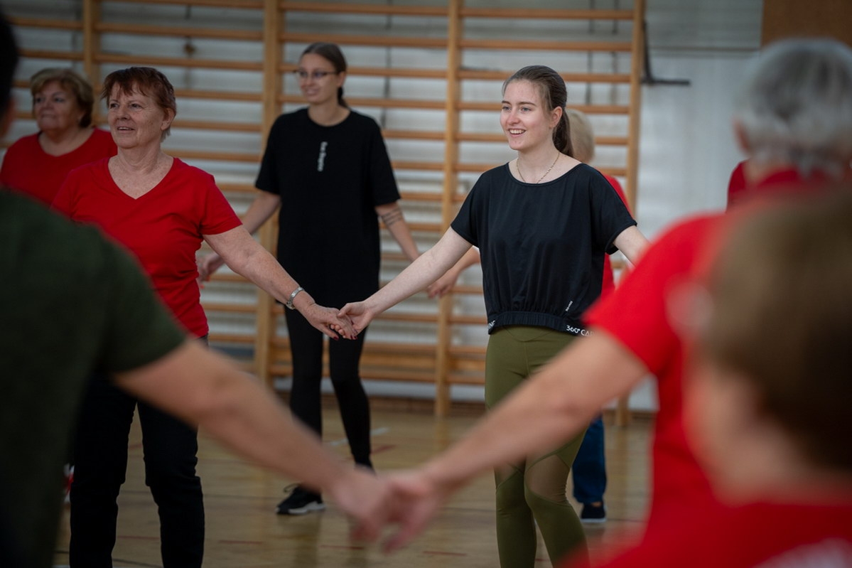 A közös örömtánc a partnerség újabb állomását jelentette: az egyetemi testnevelésóra ezúttal nem a megszokott módon zajlott, hanem tánccal, jókedvvel és mosollyal telt. A Helló60 Nyugdíjasklub tagjai és a Neumann hallgatói együtt mozogtak a közös ritmusban, a táncot pedig Gyöngyösi Ildikó örömtáncoktató vezette.