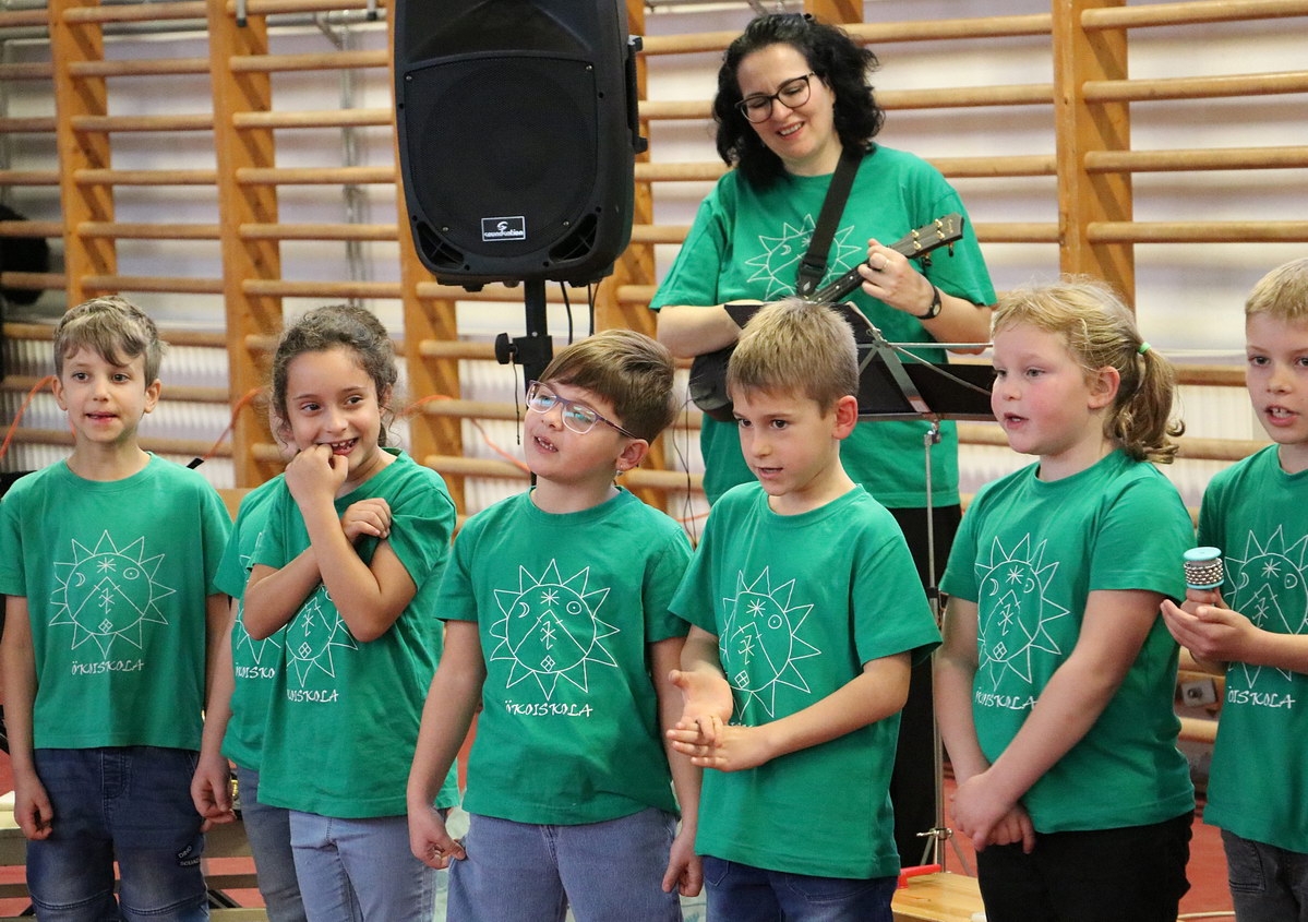 A program nem csupán a vizuális művészetekre épült: a megnyitó műsora jól példázta, miként kapcsolódhat össze a képzőművészet az irodalommal és a zenével. Az iskola kórusa vidám dalokkal teremtette meg az ünnepi hangulatot, majd Tassy Lilla egy meserészletet adott elő. Ezt követően az intézmény első osztályos tanulói mutatták be kedves, játékos műsorukat a vízisiklóról és az erdei pocsolyákról. A produkció betanításában és rendezésében Megyesi Zsófia, Gere Hedvig és Csipakné Kolmann Ágnes segítették a gyerekeket.