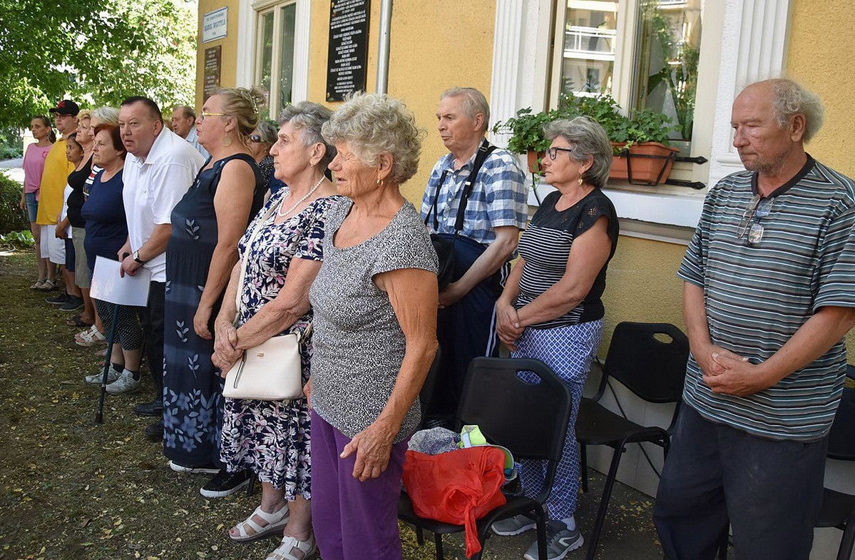 A felszeletelt új kenyeret az esemény rangjára emelve Lévai Jánosné, Jánosi István (Fidesz-KDNP) megválasztott önkormányzati képviselő és Sulyok Ferenc, a KEFAG Zrt. vezérigazgatója kínálta a rászorulóknak.