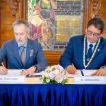 Mérföldkőhöz érkezett a hazai egészségügyi szakemberképzés és a betegellátás minőségbiztosítása. Budapesten ünnepélyes keretek között írták alá azt a stratégiai együttműködési megállapodást, amely szorosabb egységbe fűzi a Semmelweis Egyetemet és az ország meghatározó gyógyító intézményeit. (Fotó: Dr. Merkely Béla rektor és Dr. Óváry Csaba főigazgató az aláíráson.)