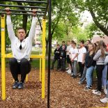 Az eszközök helyes használatát és a testnevelés órát Zaklajda József személyiedző, a Zaklajda Team -Bajnokok Tábora vezetője vezette le.