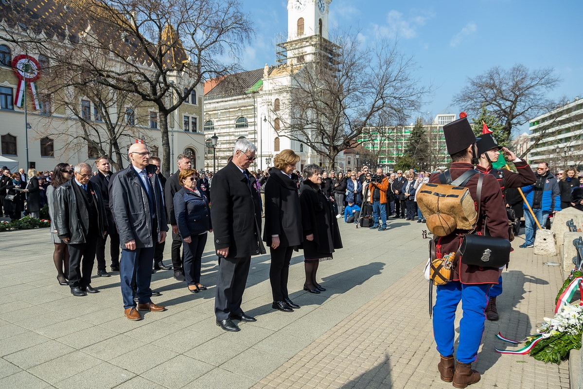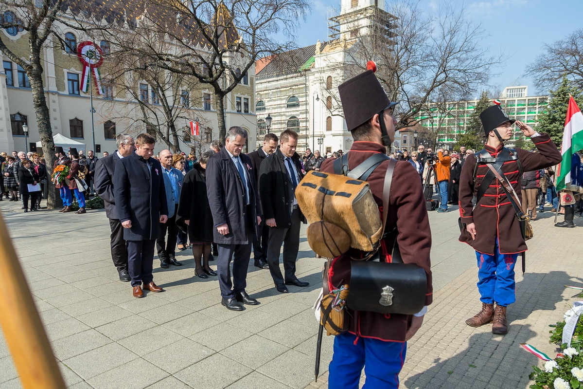 A megemlékezés koszorúzással zárult a Kossuth-szobornál.
