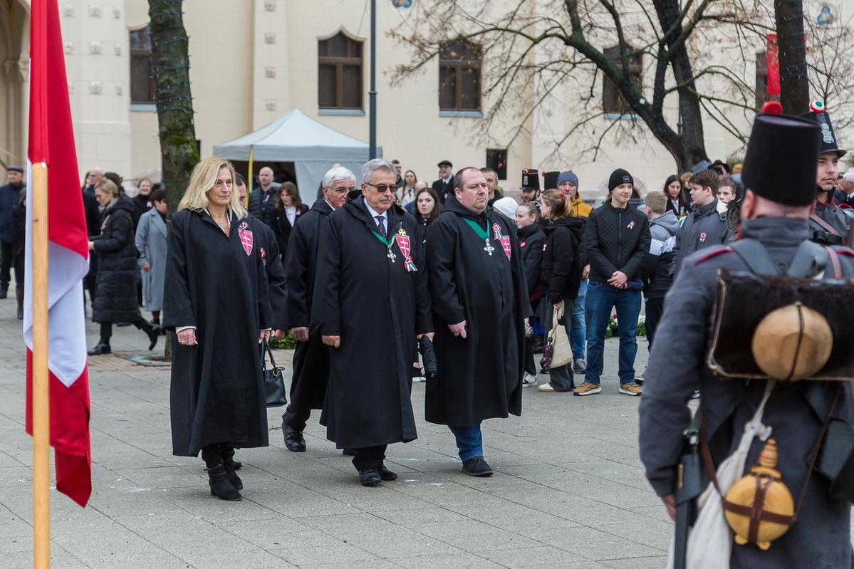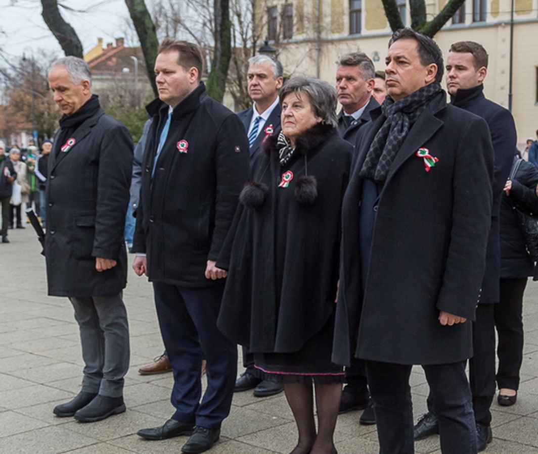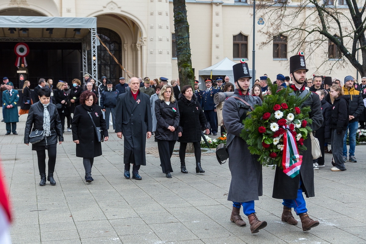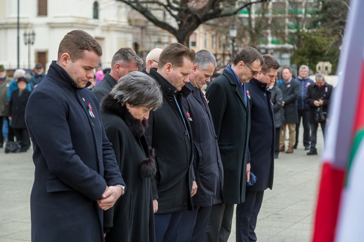 A megemlékezés koszorúzással zárult a Kossuth-szobornál.