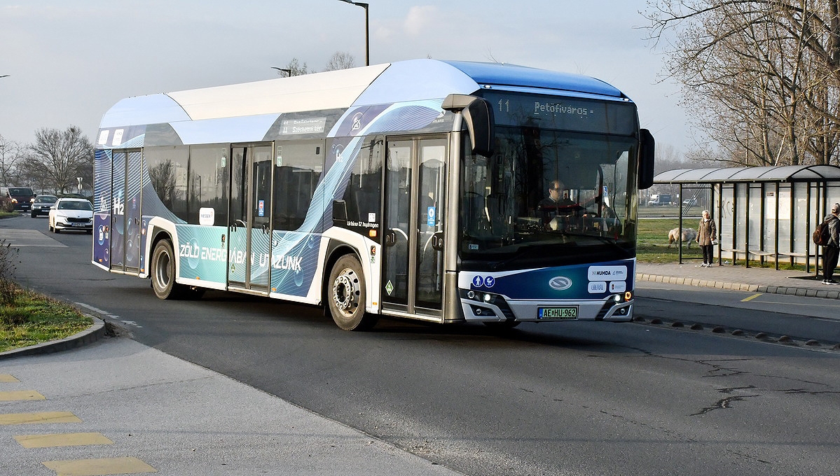 Utasokat szállít Kecskeméten a hidrogénhajtású tesztbusz
