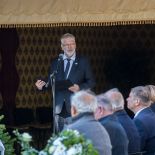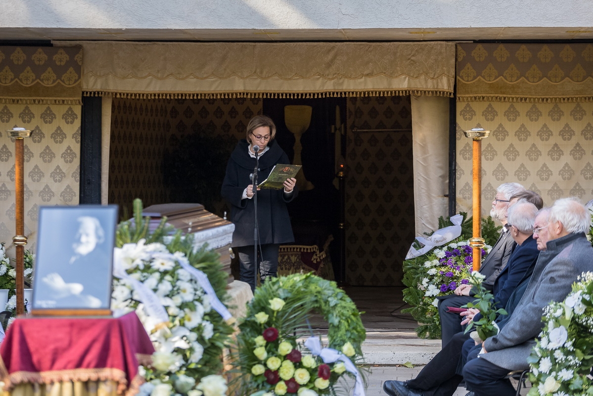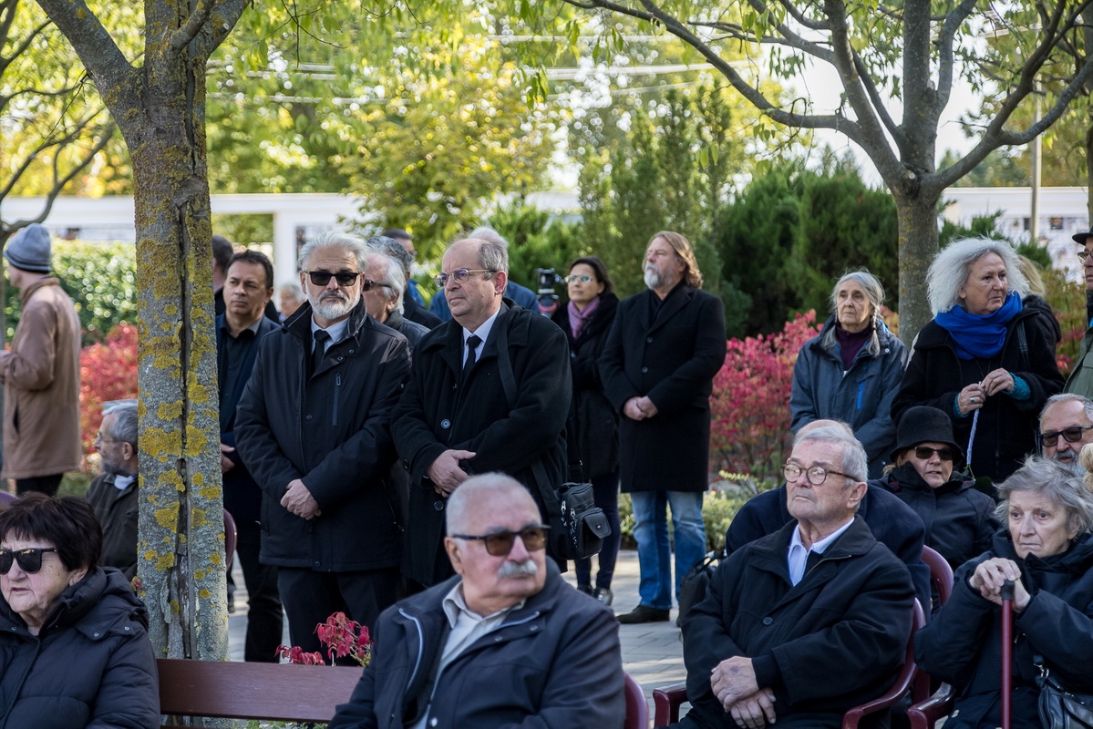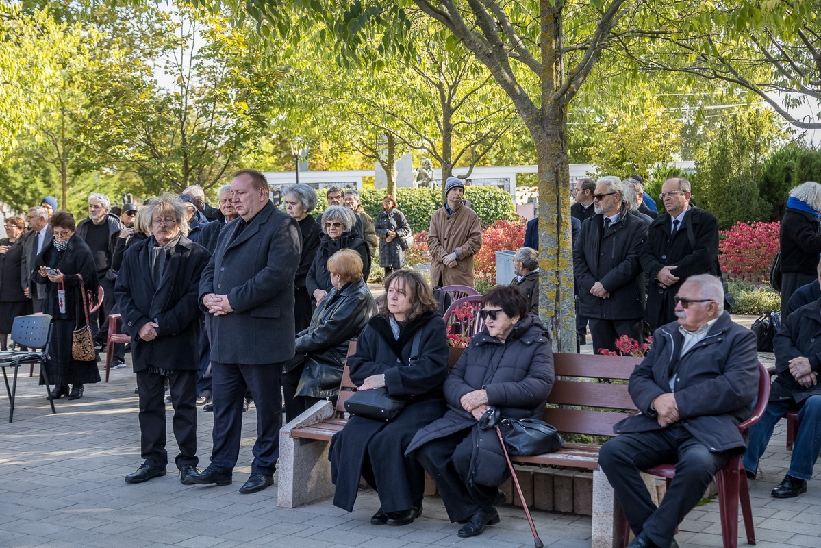2025. október 3-án, pénteken a kecskeméti Köztemetőben örök nyugalomra helyezték Buda Ferenc Kossuth- és József Attila-díjas magyar költőt, műfordítót, a nemzet művészét, akinek földi maradványait a Kulturális és Innovációs Minisztérium (KIM) saját halottjának tekintve temetett el. (Fotók: Vincze József)