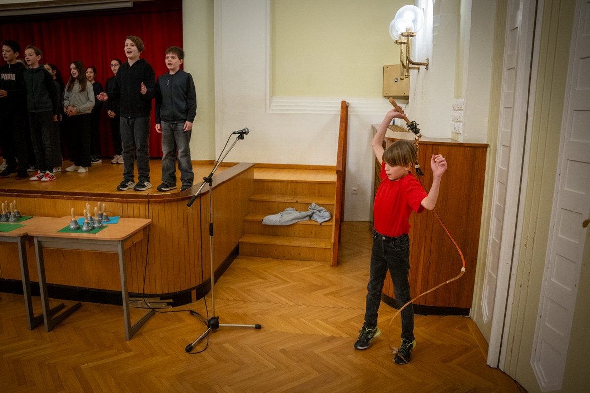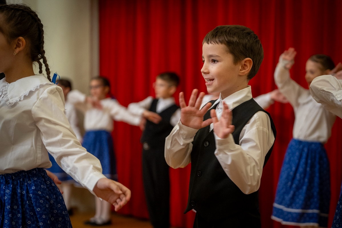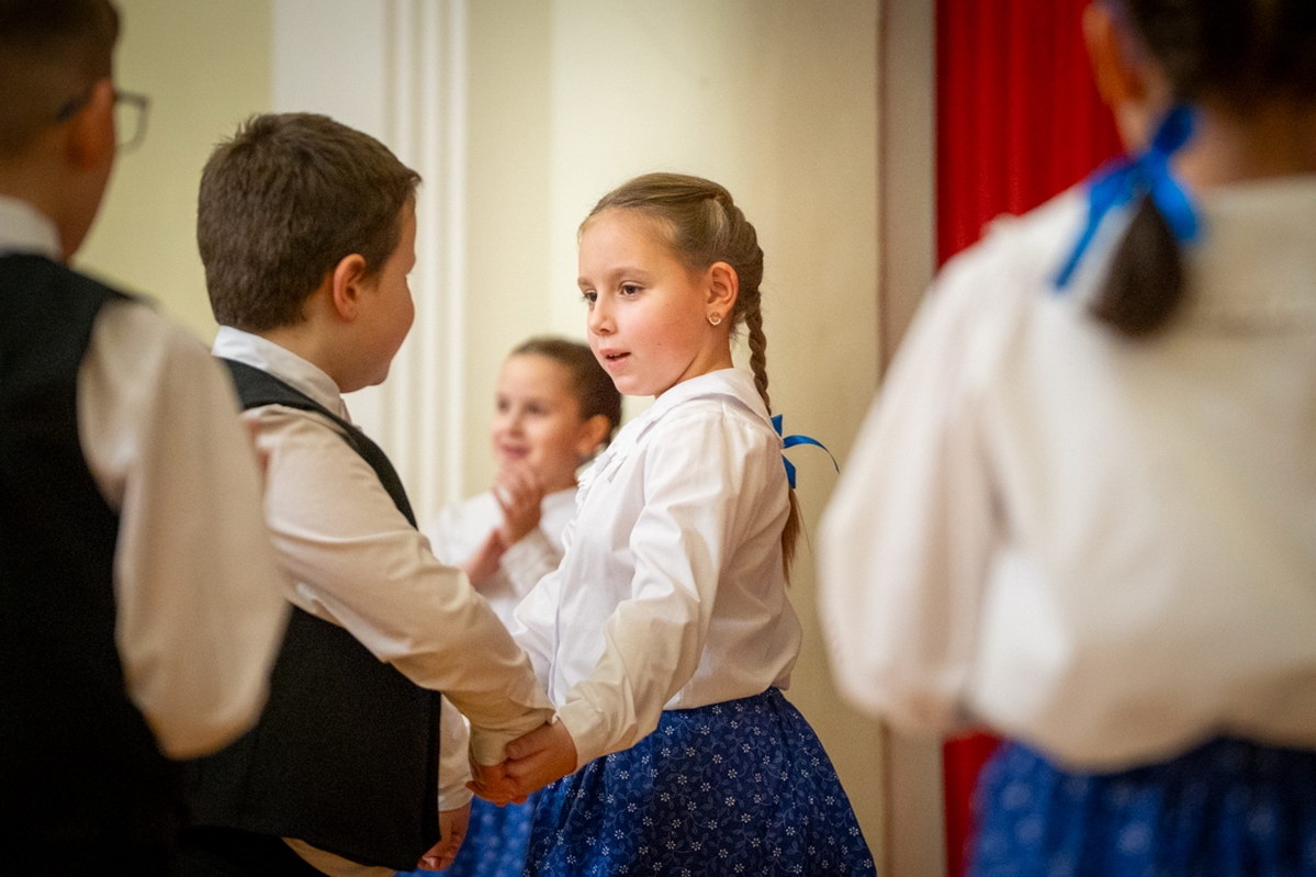 A néphagyományok sem maradtak el: a csengettyűsök a Magyar népmesék dallamát szólaltatták meg, majd Kapás Bálint 5. b osztályos tanuló kalotaszegi legényese aratott nagy sikert. Az ünnepi műsort az 5. c osztály megemlékezése zárta.