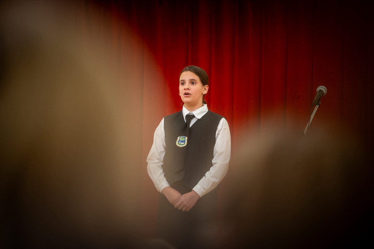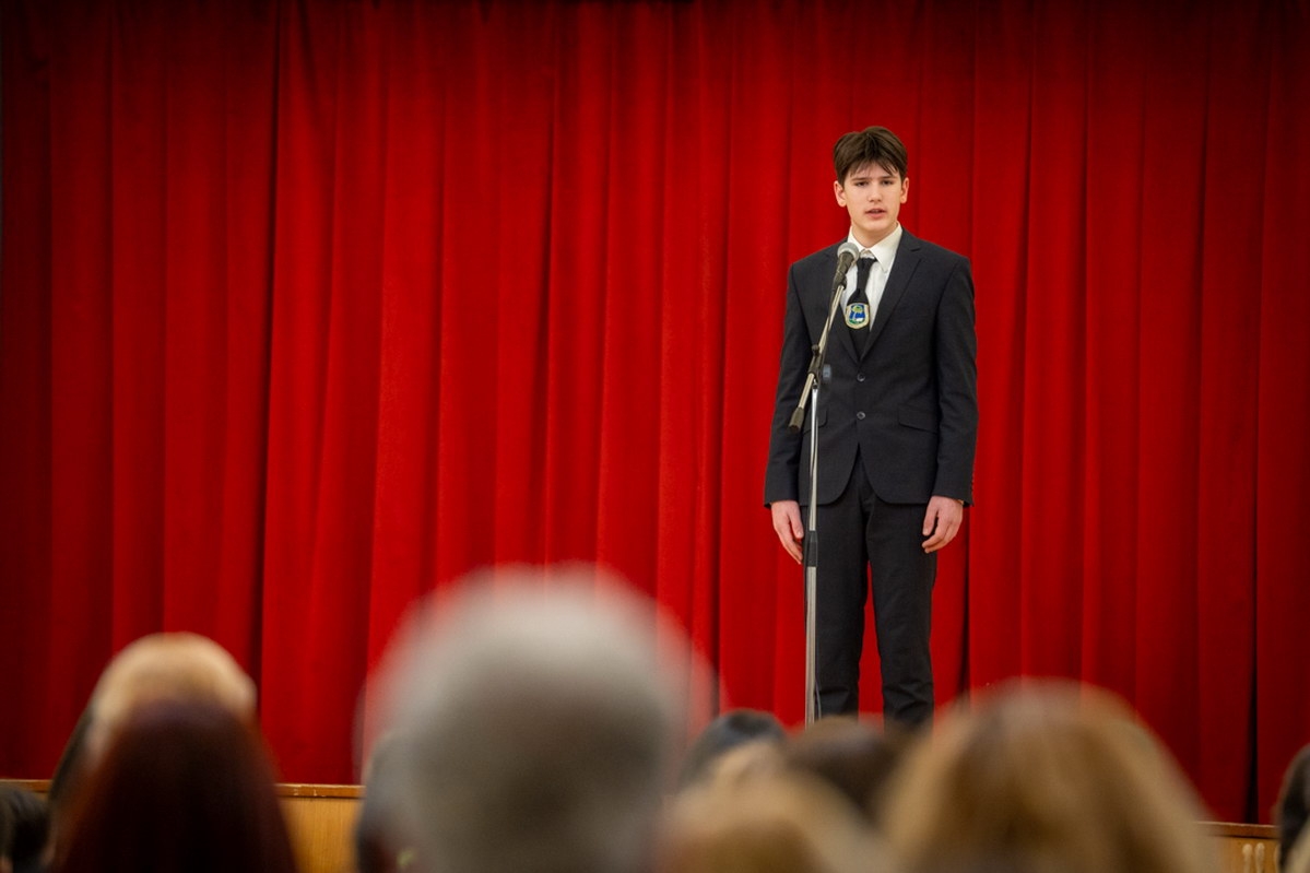A felsőbb évfolyamok diákjai versmondással, zenével és színpadi előadásokkal járultak hozzá a műsor sokszínűségéhez. Tamasi Dániel 8. b osztályos tanuló Reményik Sándor Akarom című versét adta elő, míg Ritter Johanna zongorajátéka Kurtág György közelgő centenáriumára emlékeztetett. Különleges élményt nyújtott az emelt humán tagozatos 5. d osztály Buda Ferenc Kőből rakott mese című versének színpadi feldolgozása is.
